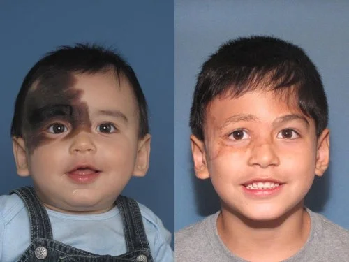 Liam, now 7 years old, was unexpectedly born with a hairy nevus that covered half his forehead and over his right eye.